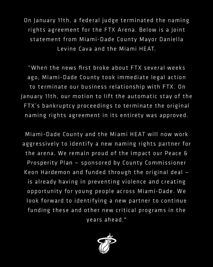 . The Miami Heat signed a 19-year naming rights deal with FTX. Miami Heats FTX Arena era is over. Heats Orlando Robinson is on the clock to a degree with destination unknown.